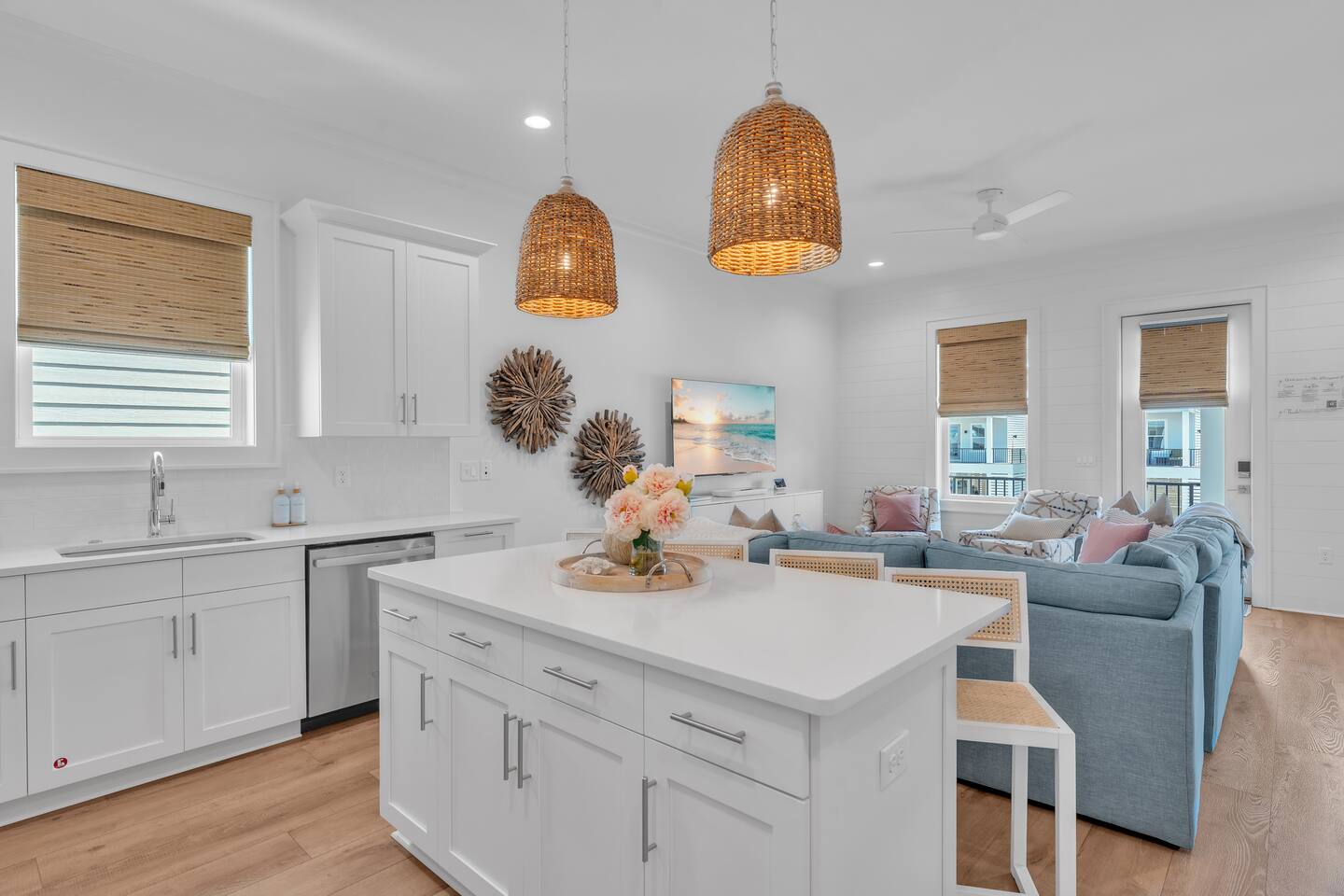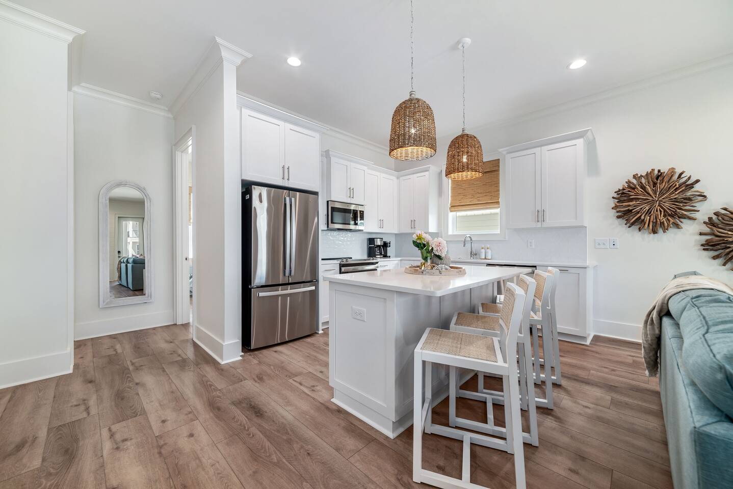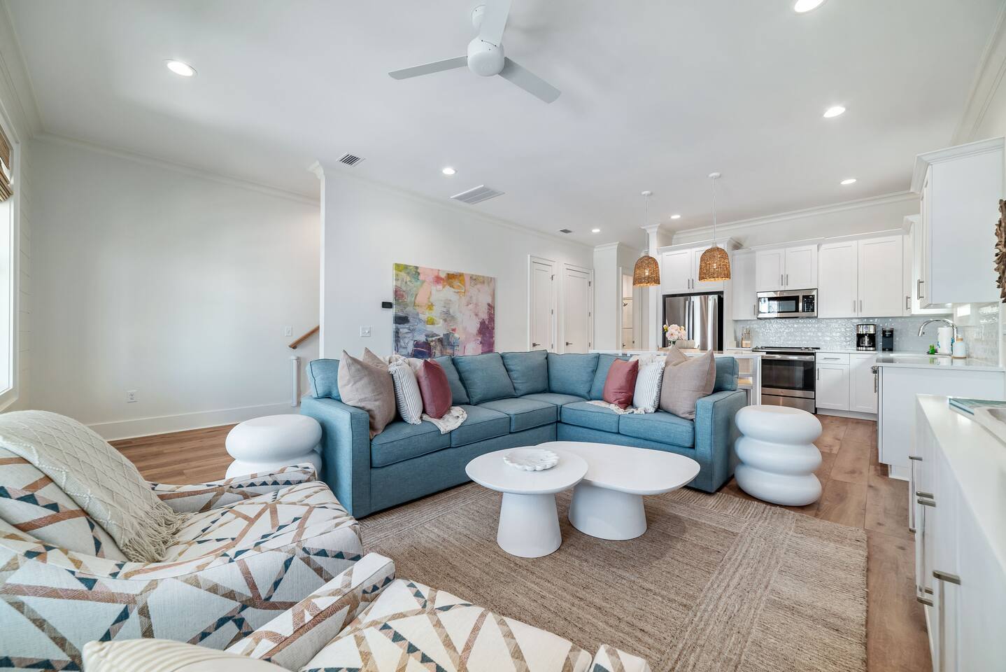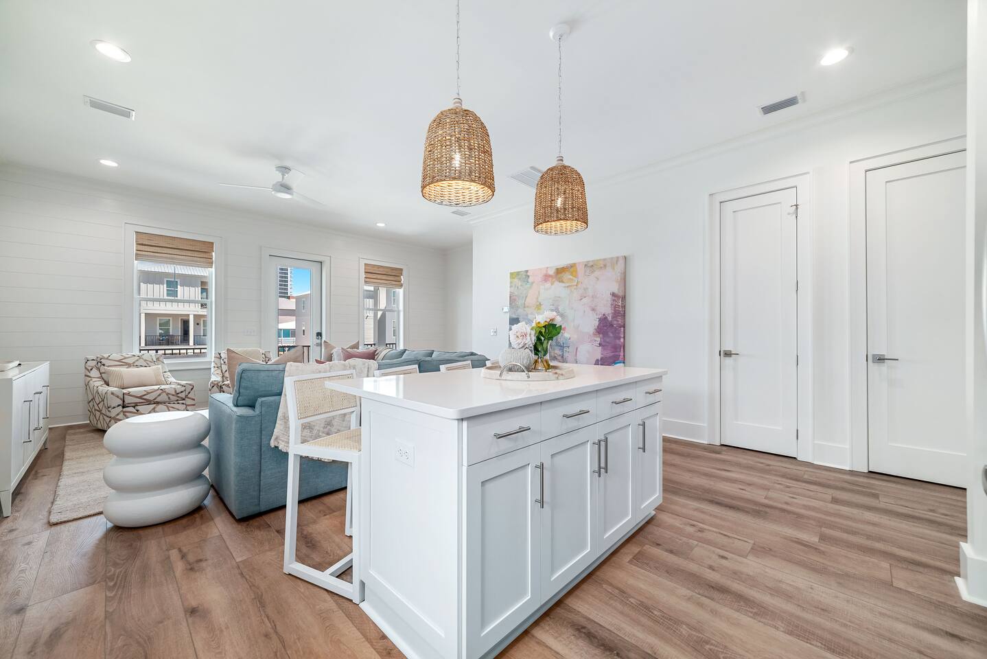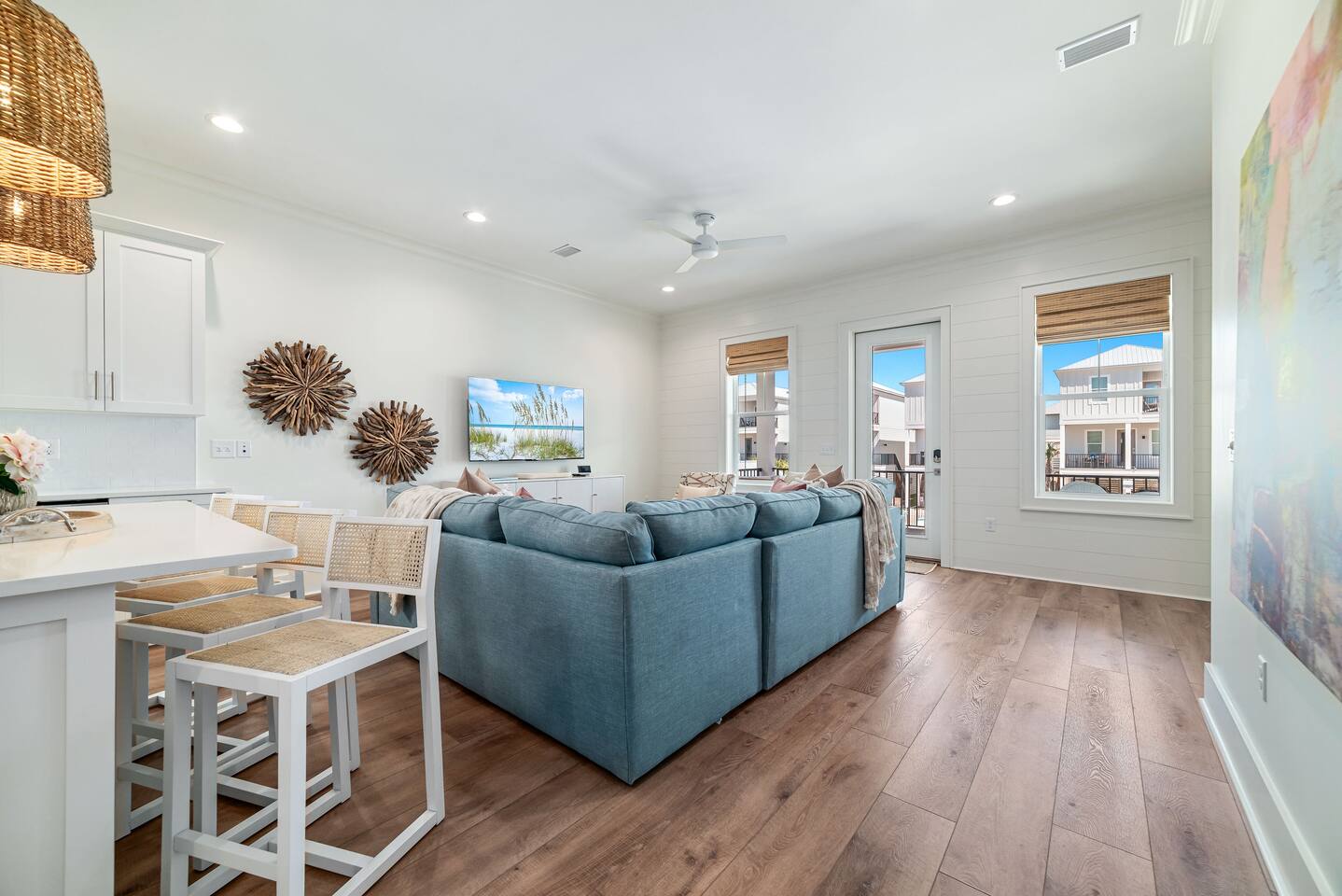 What to Expect at The Hangout House Welcome to East Fifteen Cottages—a boutique community of 15 homes with private, deeded Gulf access just steps away. Your spacious 4BR, 4BA retreat features: 🐚 First-floor king suite for easy access 🐚 Two king suites, a queen bedroom, plus built-in bunks upstairs 🐚 Sleeps up to 12, with a comfy sofa bed for extra guests 🐚 Fully equipped kitchen—quartz counters & stainless appliances 🐚 Two covered patios for relaxing outdoors 🐚 Smart TVs in every bedroom and plenty of space to gather 🐚 Family-friendly: stair gates, beach gear & cart, high chair, pack n play 🐚 Heated community pool—swim year-round 🐚 Parking for up to 4 vehicles 🐚 Private beach access right across the street 🐚 Walk to The Hangout (0.8 miles), restaurants, shops, & festivals 🐚 5 miles to Gulf Shores Sportsplex Guests rave about our sparkling clean home, comfy beds, and thoughtful amenities. Perfect for families and friends—everything you need for an effortless Gulf Shores getaway!