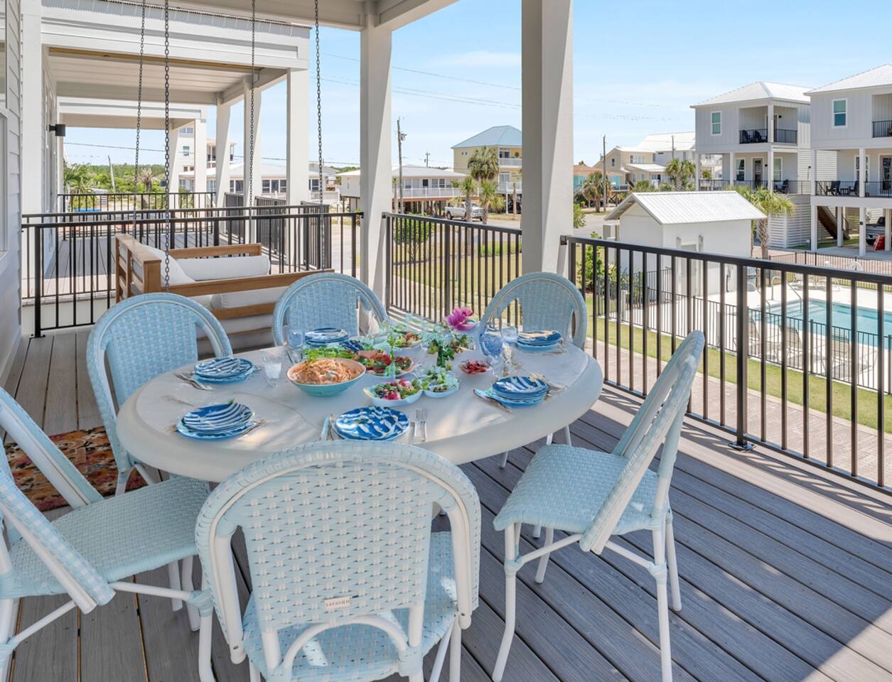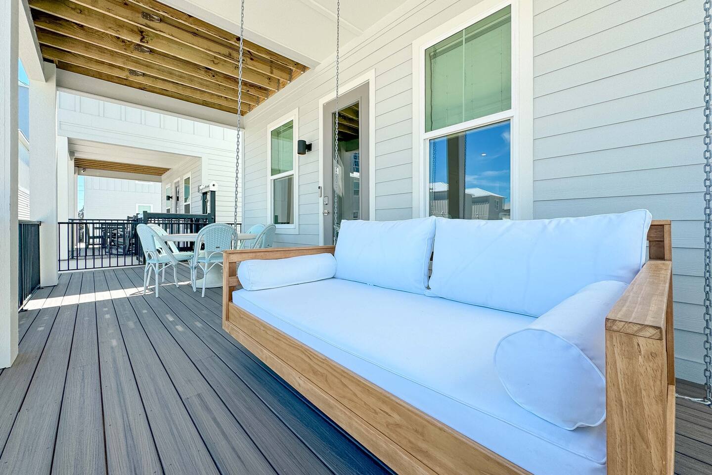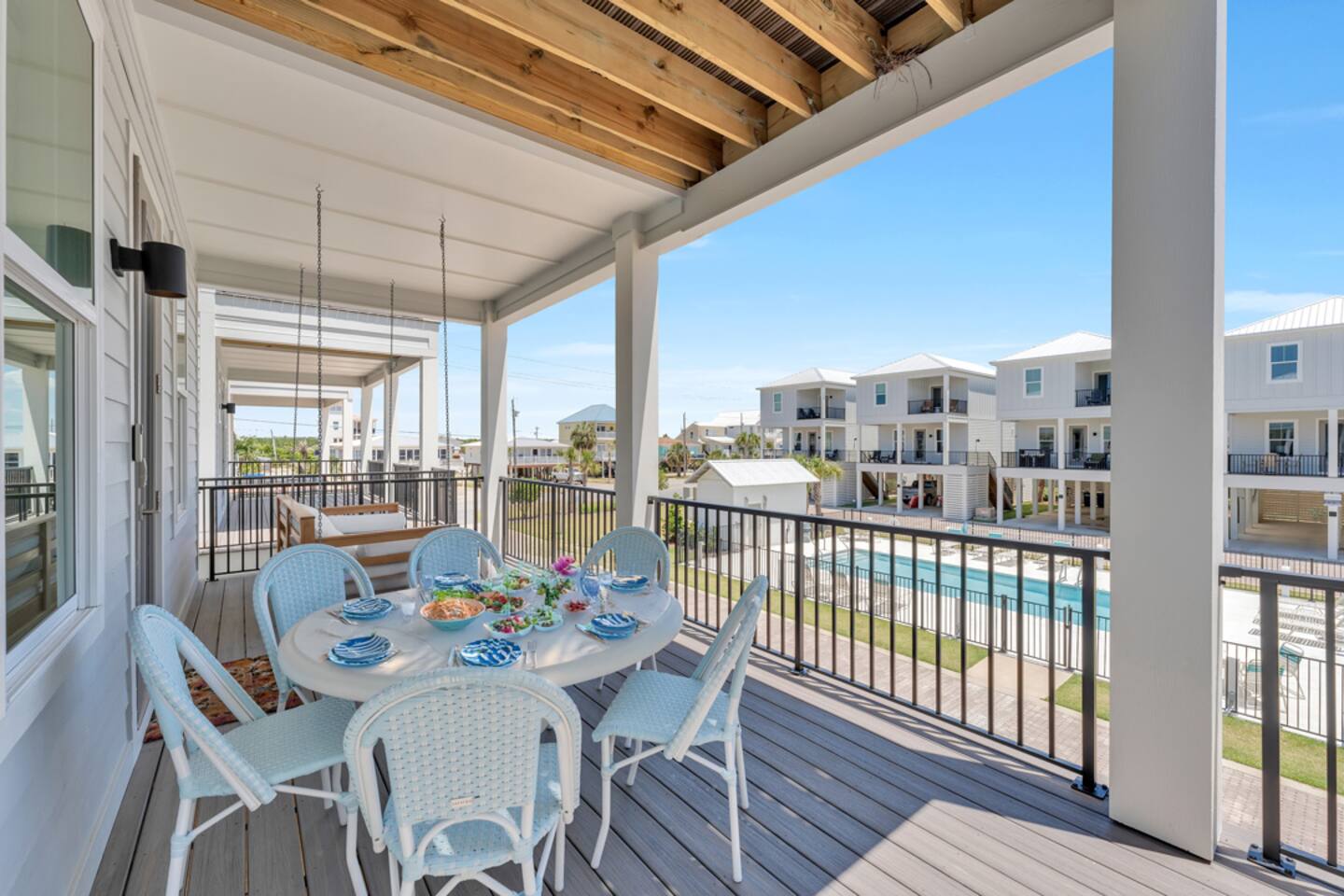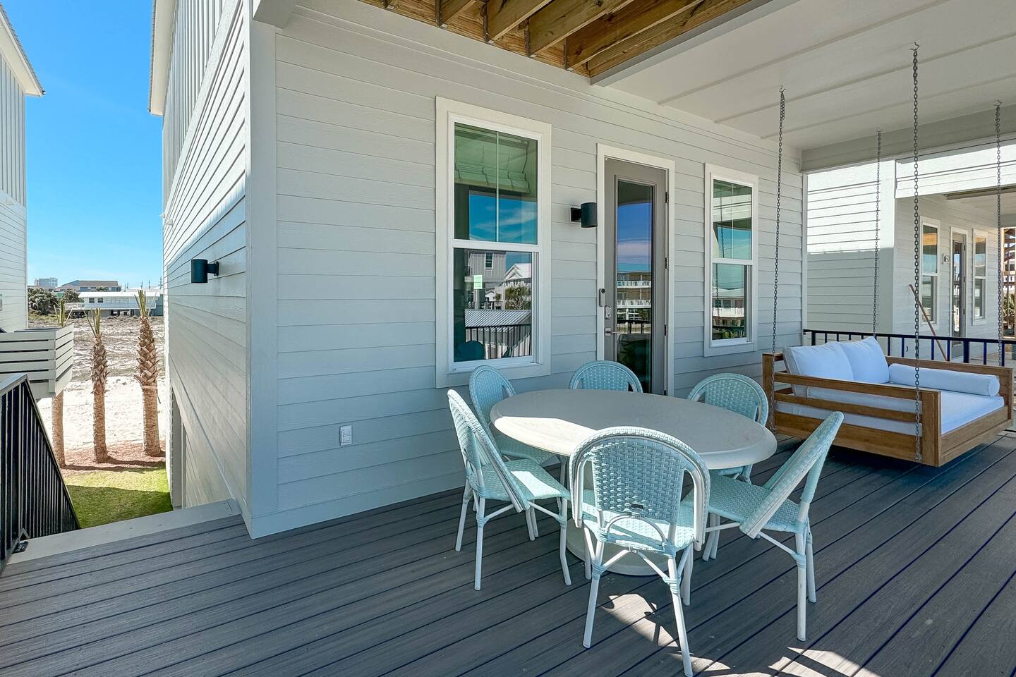 Available for Thanksgiving and Christmas! Book your holiday getaway now! Photos are staged for advertising purposes, but we will provide light holiday decor for your stay. Relaxed coastal luxury steps from the sand! • Walk to the beach, The Hangout & local spots • Heated pool + balcony swing • Designer décor & sparkling clean • Family ready: stair gates, high chair, pack n play • Private bath in every bedroom Guests love the comfy beds, easy walk, and top-notch host care!