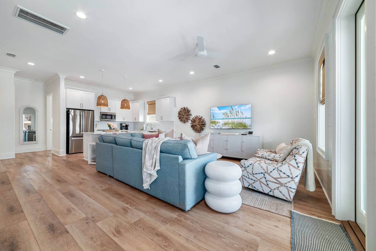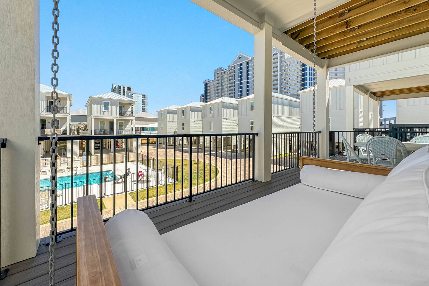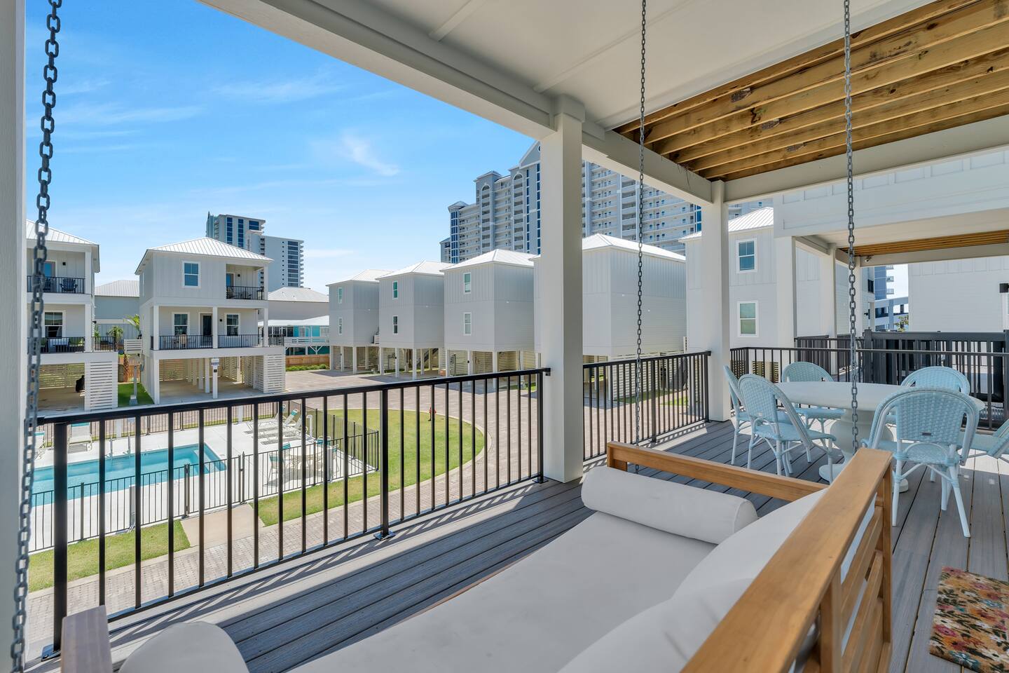 Available for Thanksgiving and Christmas! Book your holiday getaway now! Photos are staged for advertising purposes, but we will provide light holiday decor for your stay. Relaxed coastal luxury steps from the sand! • Walk to the beach, The Hangout & local spots • Heated pool + balcony swing • Designer décor & sparkling clean • Family ready: stair gates, high chair, pack n play • Private bath in every bedroom Guests love the comfy beds, easy walk, and top-notch host care!