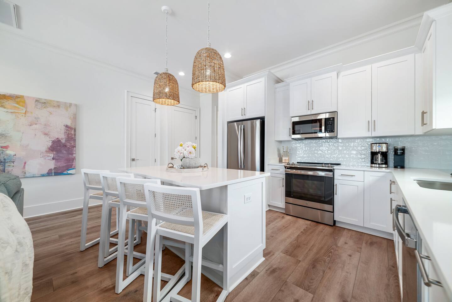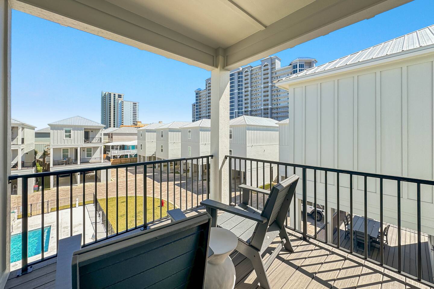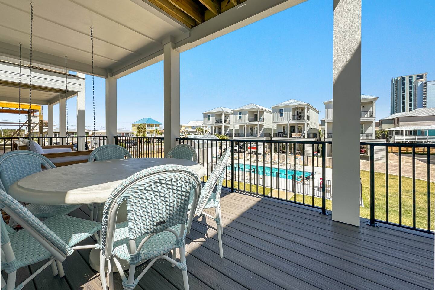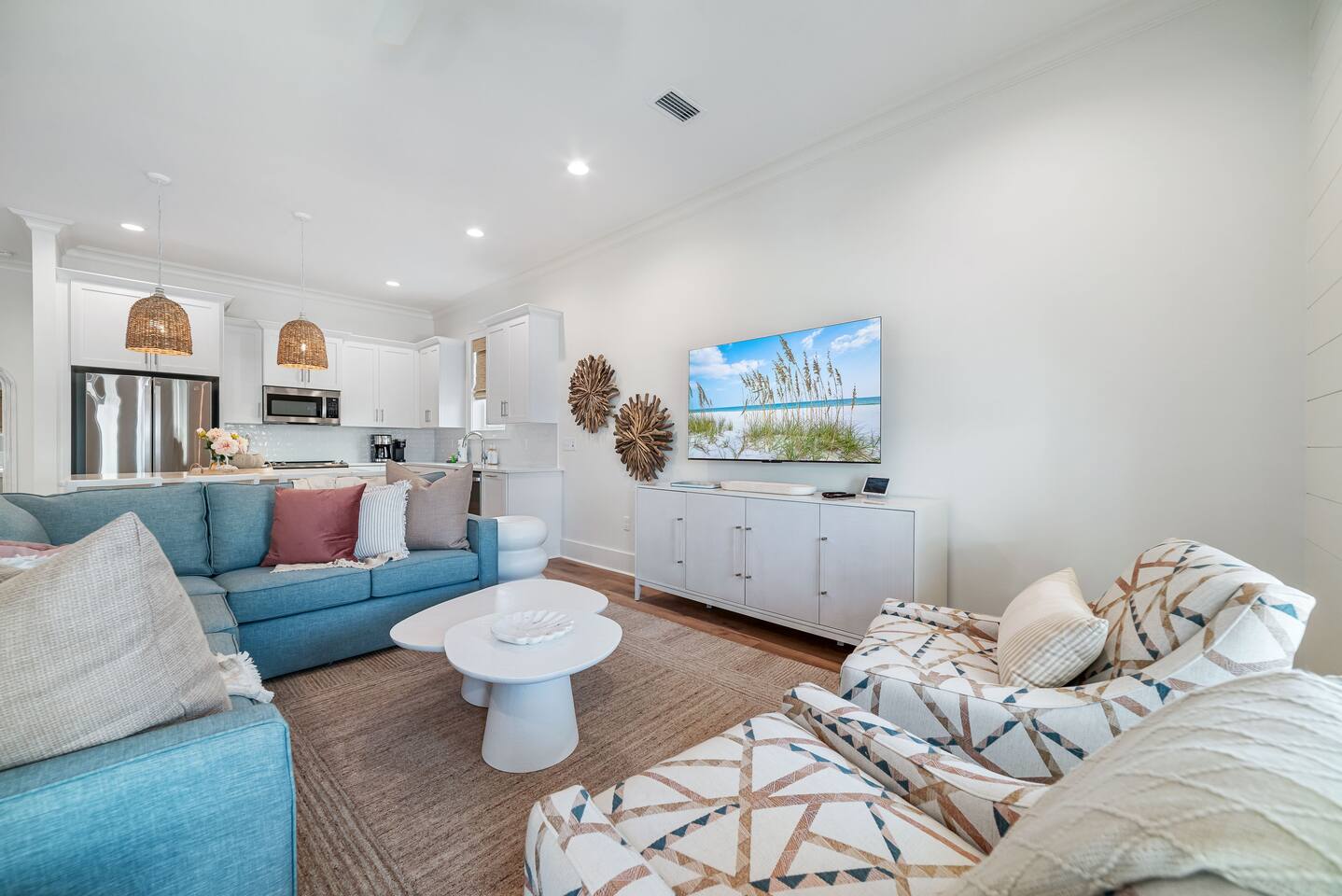Available for Thanksgiving and Christmas! Book your holiday getaway now! Photos are staged for advertising purposes, but we will provide light holiday decor for your stay. Relaxed coastal luxury steps from the sand! • Walk to the beach, The Hangout & local spots • Heated pool + balcony swing • Designer décor & sparkling clean • Family ready: stair gates, high chair, pack n play • Private bath in every bedroom Guests love the comfy beds, easy walk, and top-notch host care!