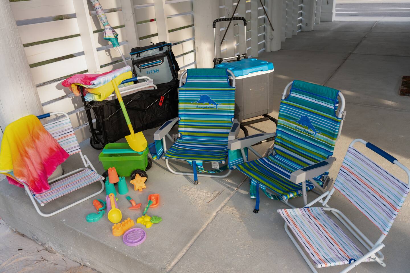 - Beach essentials Beach towels, umbrella, beach blanket, snorkeling gear